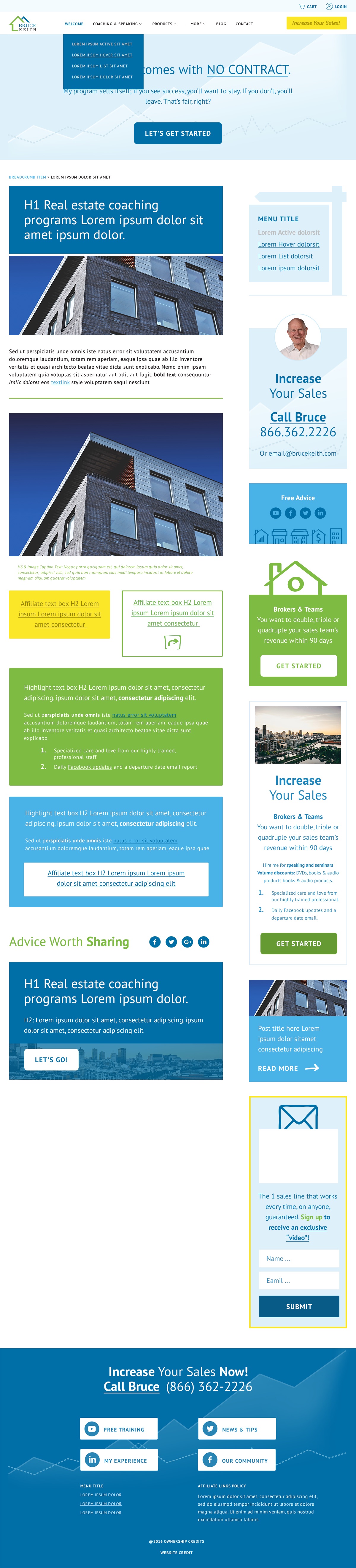 This real estate coaching website was originally built for a Canadian coach who was successful and well-regarded in his field, but didn’t have a website to show for it. The credibility factors, such as media features and associations that had hired the coach, were not displayed well at all on the old website. Neither were the strong testimonials. This website project for selling a B2B service was designed to communicate the high-value return that potential leads could expect. E-commerce, to sell information products, was also re-organized on the site.