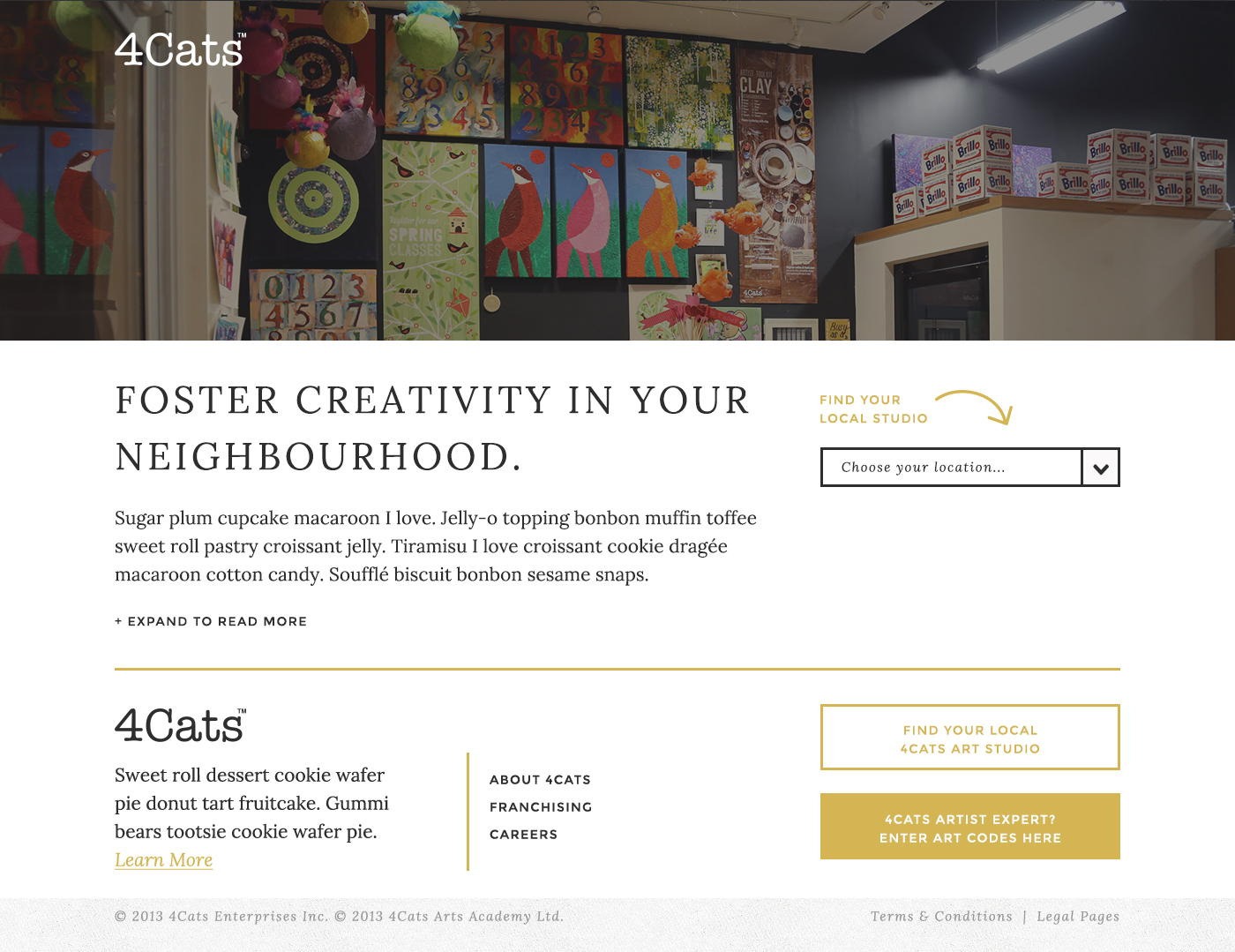 The headquarters site, which was part of the same domain, had a store locator – a directory – for users to find stores near them. In addition to a searchable map feature, we also had a ‘drill down’ menu on the sidebar of this page, to show locations by province (this was a Canadian franchise, with most locations in the country). This used an ‘expand and collapse’ JavaScript feature.