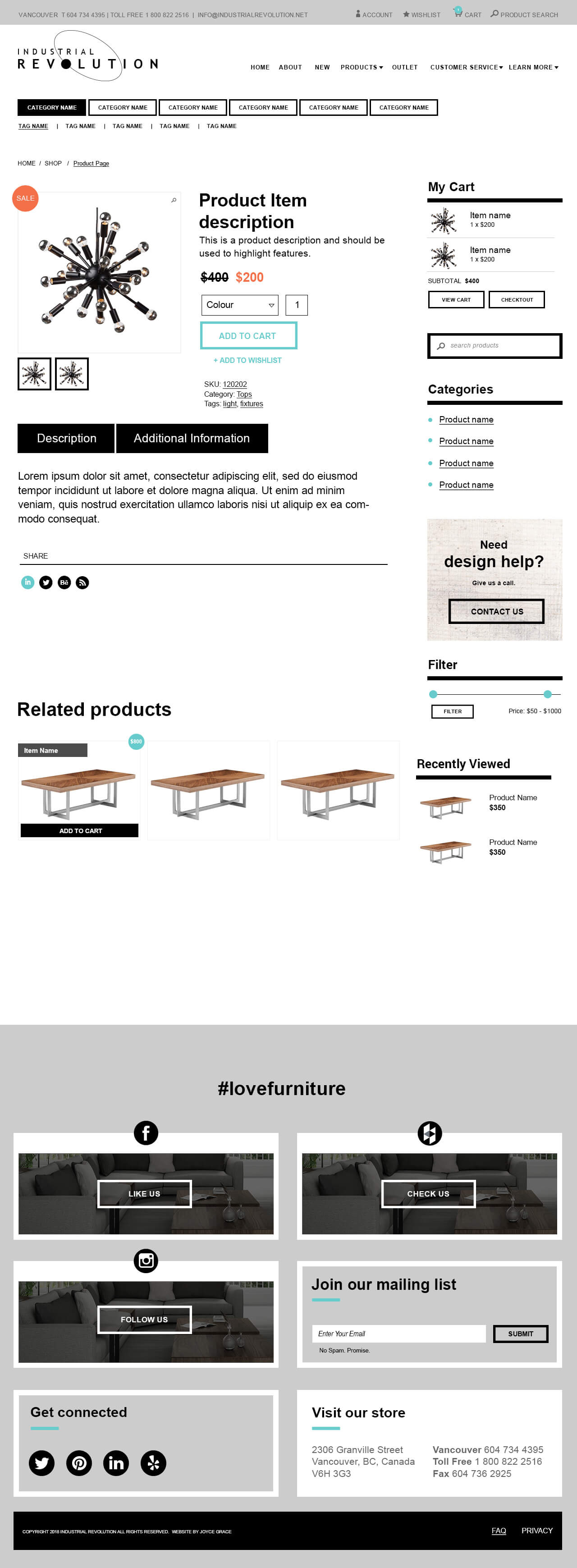 For the outlet store, which contained revolving products that would not be sold online, I came up with the solution to showcase an Instagram feed. This would allow the client to do social media marketing and easily update their images, without having to mess with the intricacies of the websites CMS.