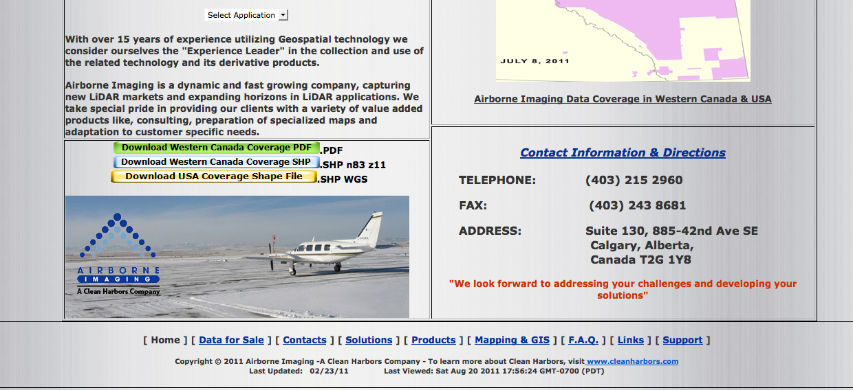I was referred to this company through a friend. Shortly after, one of the company’s executives decided to meet with me while he was in town. We had coffee and talked about a new website for the technology company, which was based out of Calgary, and had recently been bought by a U.S. corporation. They needed to establish an updated web presence for their Canadian market. That included showcasing a library of LiDAR data that they had on file, for potential interested buyers.